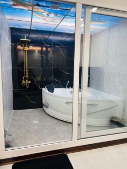 • همکف یک واحد تک‌خواب ۶۰ متری با جکوزی اختصاصی، مجهز به سرویس ایرانی و فرنگی؛ همراه با حیاطی دلباز و چیدمان‌شده با میز و صندلی، مناسب لحظات استراحت و دورهمی.